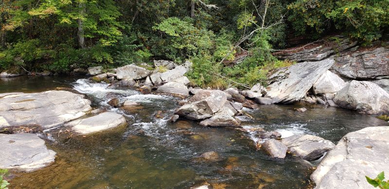 Then I stopped at Linville Falls. My leg was healed enough that I felt like I could do most of the moderate hike of about one mile. There were a lot of people and dogs on the trail and it was hard to get clear shots. I didn’t hike to the upper falls.