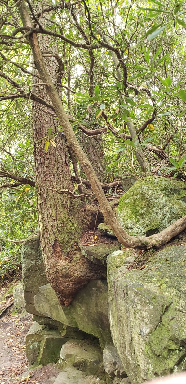 I found later where the trails were that gave you an overview of the Linn Cove Viaduct, but I decided to stop at the Linn Cove Viaduct parking area, where the trail took you UNDER the bridge. That was a more manageable walk anyway, and I found an interesting little area to explore.