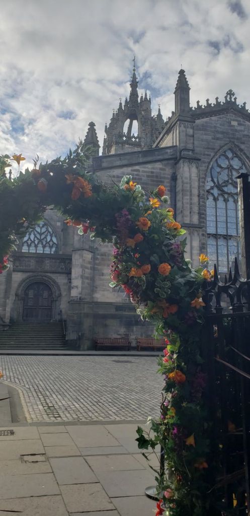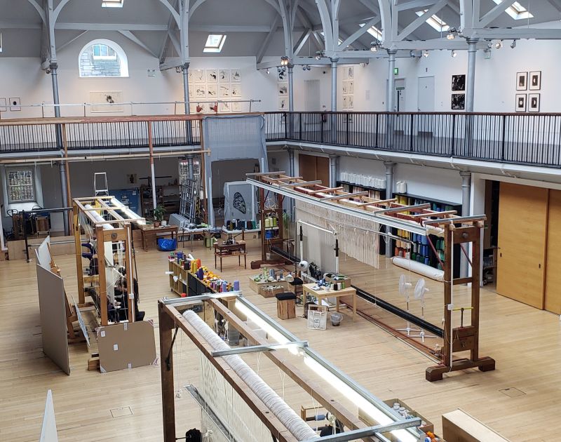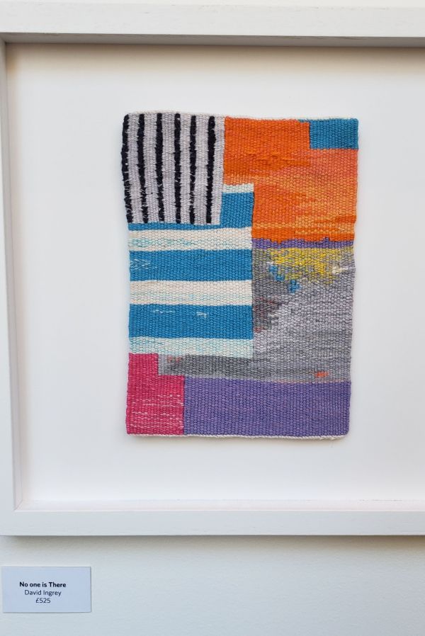 After a quick trip to the closest grocery to get bandages, antiseptic cream, and ibuprofen, I headed to Dovecot Tapestry Studios, a short walk away and an item on my bucket list. I wanted to go there more than any other place in Edinburgh. I ended up getting there after the gallery to see the tapestry studio had closed. I had already seen the Chris Ofili exhibition in London when we went to the National Gallery in 2017, so I wandered about the cafe and looked at the small tapestries on the walls there, and picked up a few things in the gift shop, including a book about Archie Brennan. I told the staff at the desk that I had studied under Archie, and why I probably could not come back when the gallery was open. They made a call and escorted me up to the gallery so I could see the tapestry weavers at work and the exhibition around the balcony walls.