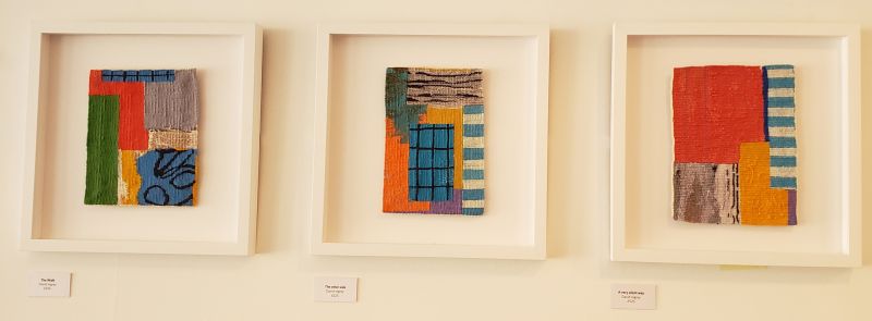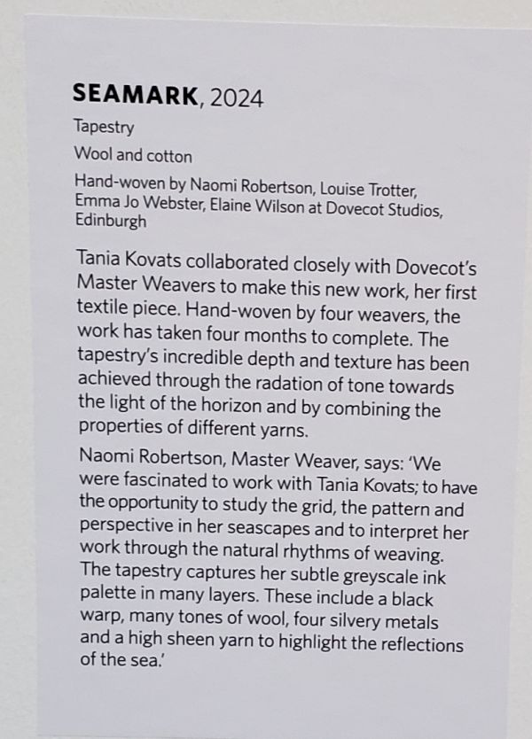 Here is a gallery of the small tapestries in the cafe area of Dovecot. Click to see the enlarged photo with the artists’ names and titles.