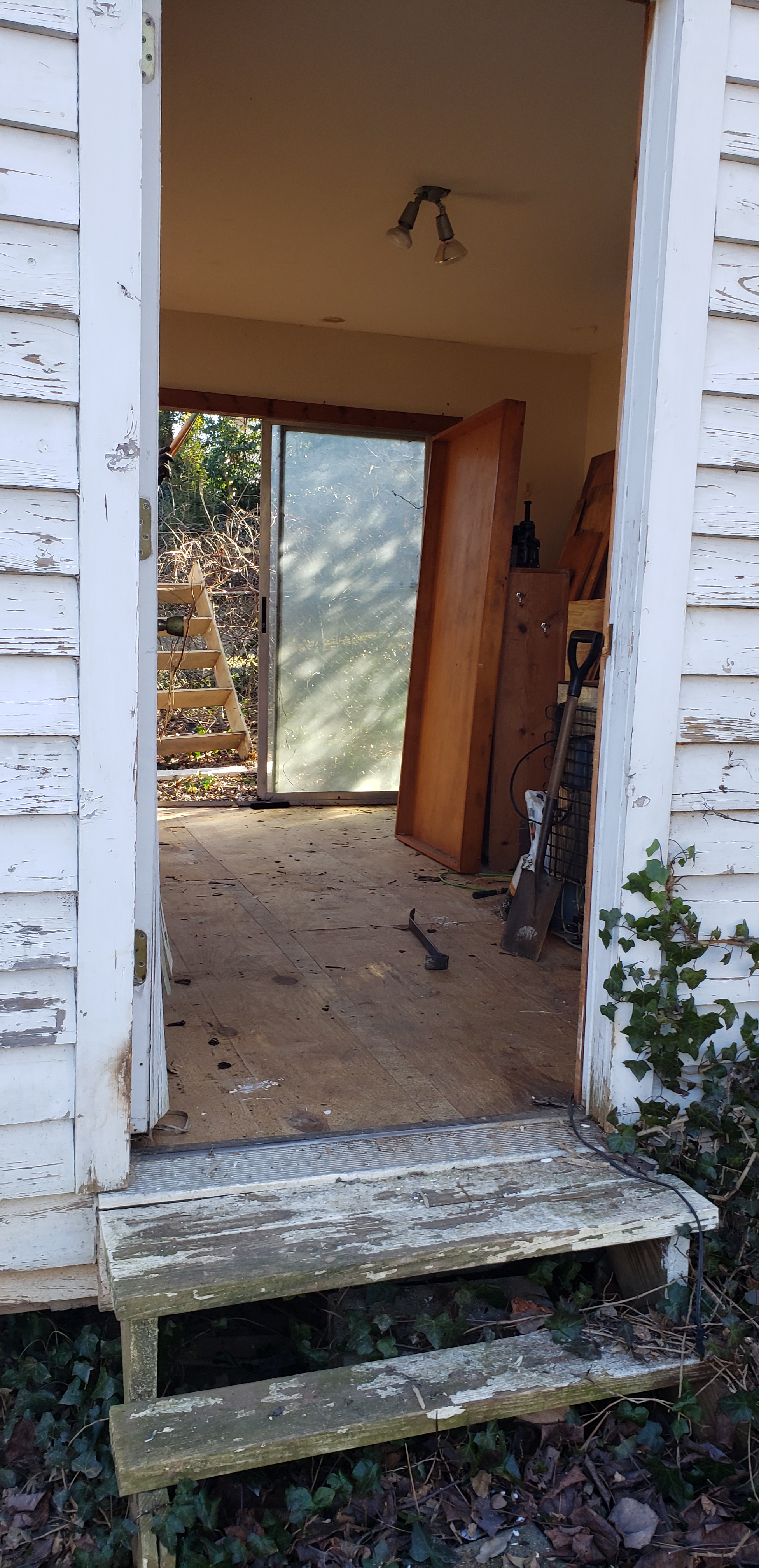 But the little studio is going to be great, and I’m sure it will lift my spirits once we get it set up. The new roof is on, new insulation installed, the steps replaced, and the drywall ceiling patched and replaced where there were leaks. The shed on the side has a new frame, latticework, and doors. A lot of stuff inside can now go under the shed, because I stored yard and gardening tools and supplies inside when it got to be so viney and such a mess that it was difficult to get into. There was an extra pack of shingles so I put them down on the ground under the shed. It does need a new door and I have a ceiling fan that can be installed later.