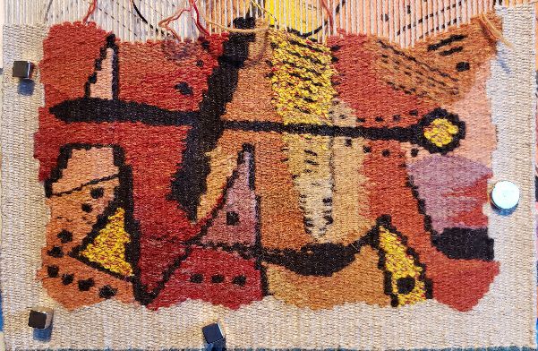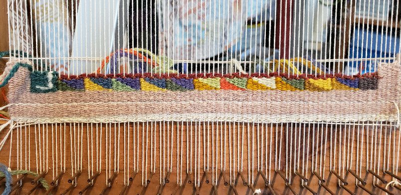 I am pleased with how the tapestry weather diary is coming along. Last year I purposely started it in a bit of a chaotic design, but this year I have taken what I learned and calmed it down. It is more structured with same and similar weights of weft yarns.