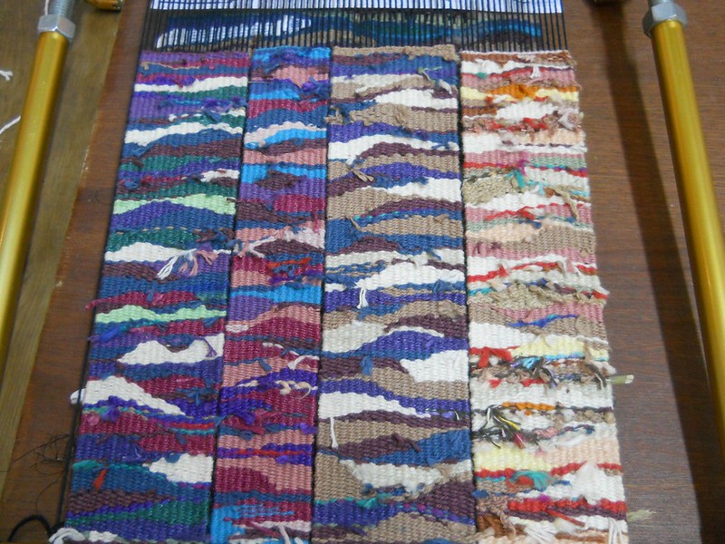 Almost everything on the little loom is woven with thrums, the bits of yarn that are wasted on a big floor loom. I love giving things that would normally be thrown “away” a second life.