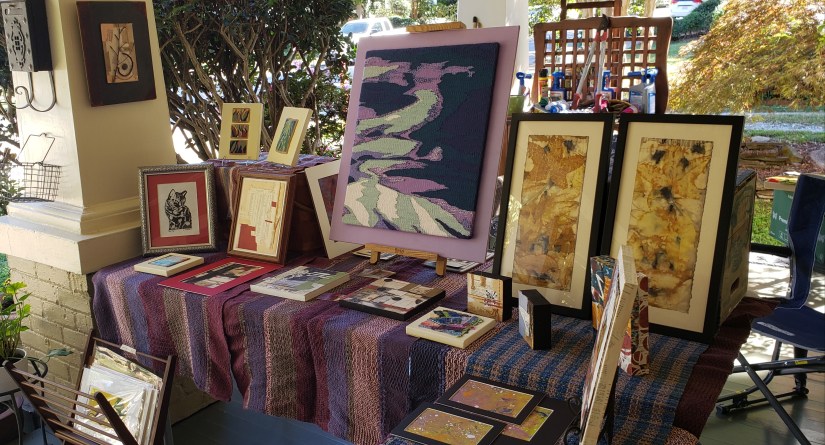We went to an art opening reception at Center for Visual Arts on Friday night that was fun and featured a couple of friends. One shared the print studio with me and another was my ceramics professor when I was at Greensboro College. This is where I believe we picked up the Covid cooties. One person we both talked to for a while wiped his nose and said, “Excuse me, I’ve a bit of a cold.” Whereupon, I scooted away quickly, but unfortunately not quickly enough. And just as quickly, I forgot about it.