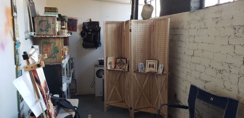 The days before my trip were consumed with getting the studio cleaned and the yard stuff moved to the shed part and carpet tiles laid down. This part of the project was a lot of fun because my favorite “toy” when I was little were these small plastic grids with color tiles to press into them, much smaller than Legos. I could spend hours making different patterns with these. So putting together different colors and textures of 24 inch carpet tiles was great fun for me and I think Sandy enjoyed it too. I know that both of us are very pleased with the result.