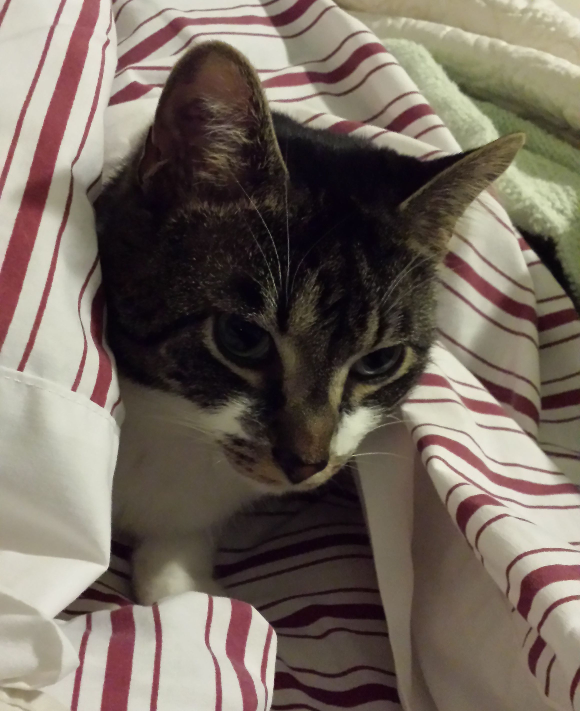 I’m getting started a little later than usual because the evil kittehs woke me up by scampering across my face late last night, and even though that got them evicted from the bedroom, it was a long time before I could go back to sleep. Lately I’ve been going to the Church of the Covenant when in town, and I especially wanted to go today because it is Mark Sandlin’s first official day as interim minister and I want them to make it permanent very badly.