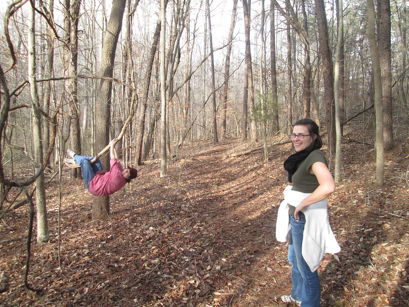 I found a huge grapevine to swing on. My new friend found out just how silly I can be.